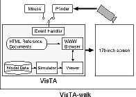 As the questionnaire survey indicated, the user interface of the VisTA system should be improved. Hence, we developed the VisTA-walk system which has a more intuitive interface, i.e., gesture-based interface, than the VisTA system. Figure 11 shows a block diagram of the VisTA-walk system.