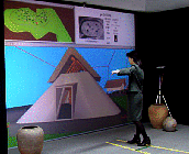Users can also "walk around" a reconstructed village and see the structures in a house while simulating the development of the village in a particular year. This allows the users to investigate the view from any point in the village.