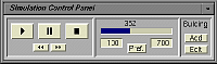 The VisTA system is mainly controlled with the "Simulation Control Panel" window. Temporal transition simulation can be done with a panel of pict buttons like with a VTR. In addition, the "Preference" window and "Editing" window pop up if the user needs to set the simulation speed and duration parameters or modify the data of each building. The "Console" window is the interface for the input/output of files and for specifying the parameters of the display.