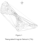 Figure 1 shows the basic TIN derived from the data from the survey of a pa site. The triangles created by the TIN join all the points originally surveyed. The edges of the site must be determined in order to increase the accuracy of the model. If edges are not defined then the calculations performed with respect to the sides of the model do not reflect the true surface. The TIN is then used to produce other representations of the sites. Figure 2 shows a contour diagram with contour lines at an interval of 0.3m produced from the TIN shown in Figure 1. The importance of the surveyed edges can be seen in the reduction of scope between Figures 1 and 2. Contour lines outside the edges defined in Figure 2 would not represent the true landform if generated automatically.